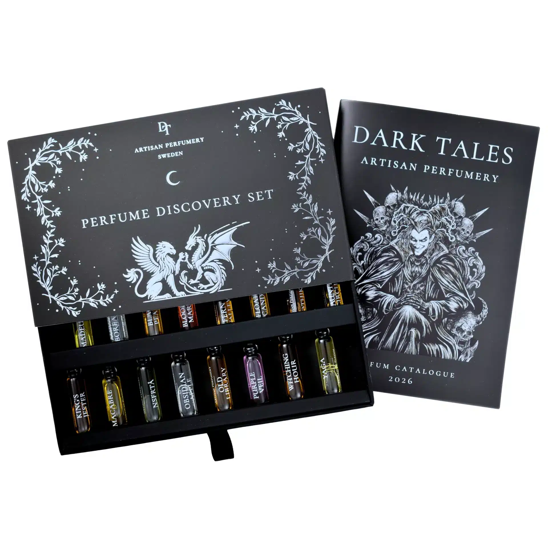 Step into the world of Dark Tales with the Discovery Set, a carefully curated journey through sixteen samples. Each vial holds a story, a secret, a fleeting moment captured in scent. From ethereal lights to shadowed forests, from whispered memories to daring fantasies, this collection invites you to explore, to wander, to lose yourself and find yourself again.